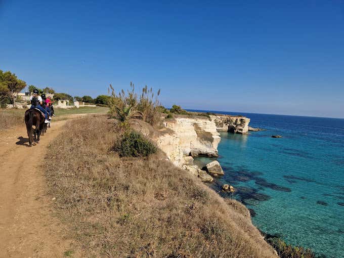 Take part in a horseback ride in Melendugno, in the beautiful natural setting of Salento: venture for 1 hour in the company of an equestrian guide through the countryside, pine forest and Mediterranean maquis to the spectacle of the Faraglioni di Sant'Andrea!