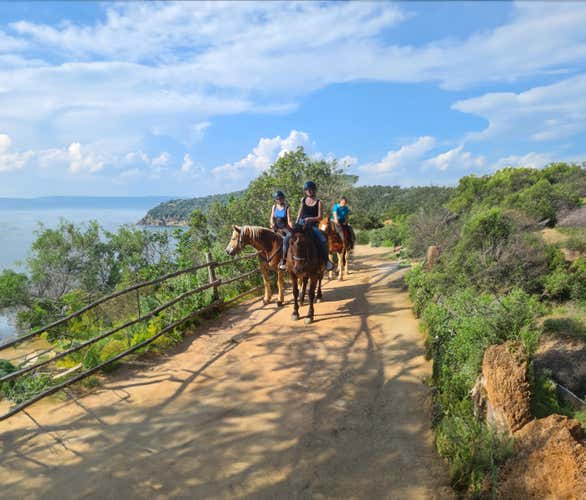 I did this experience with my fiancé for our anniversary, as neither of us had ever been on a horse before. We were very lucky: after days of rain we found a beautiful day. Sara was really nice and super helpful: she explained everything to us calmly before we left and always kept an eye on each of us, making sure everything went well. The horses are well-trained, perfect even for those who, like us, were first-timers. The scenery was spectacular and the two hours flew by, which was really enjoyable. We can't wait to do it again, maybe even when we can go swimming!