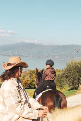 Lake Trasimeno as you've never seen it. Take part in our horseback ride in Magione! In the company of an equestrian guide, you will ride through a landscape dotted with olive groves while enjoying the panoramic view of Lake Trasimeno. An experience of over 1 hour that will fill your eyes and heart with wonder!