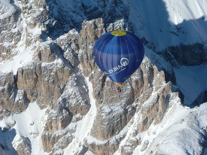 Winter flight in a private hot-air balloon in Dobbiaco in the Dolomites