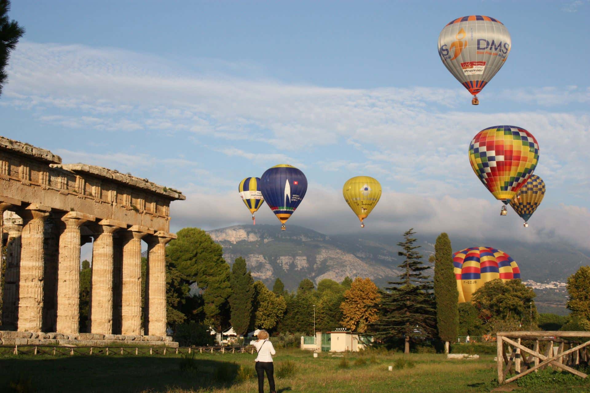 In September and October, the Paestum Balloon Festival is held. Every year tourists, onlookers and enthusiasts reach Paestum to fly or just to enjoy the spectacle offered by the hot air balloons.