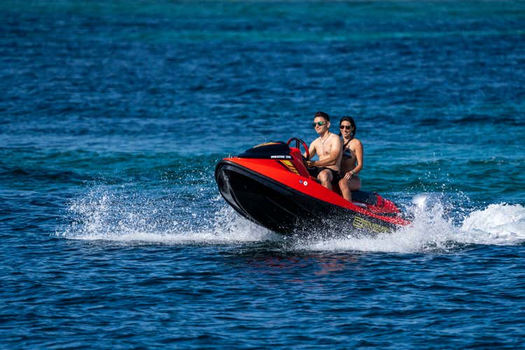 Driving a jet ski without a licence? You can do it, but only in Alghero! Awaiting you here is the Breeze 10.8 watercraft with a 40 hp outboard engine, a craft that combines the design of a jet ski with the best driving characteristics of a speedboat. Together with you, you can take up to 2 passengers (1 adult and 1 child) on board. You will then finally be able to speed along the coast for a full 1 hour rental!