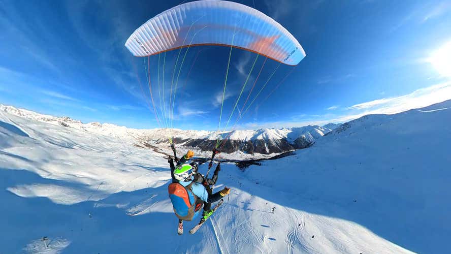 An even more unique paragliding flight, with skis on your feet (if you wish)! Fly above the ski resort of Livigno, framed by the Alps: in the company of a professional pilot, with whom you will glide and experience acrobatics in the air for about 10 to 15 minutes. A 1-hour experience in the snow with a difference!