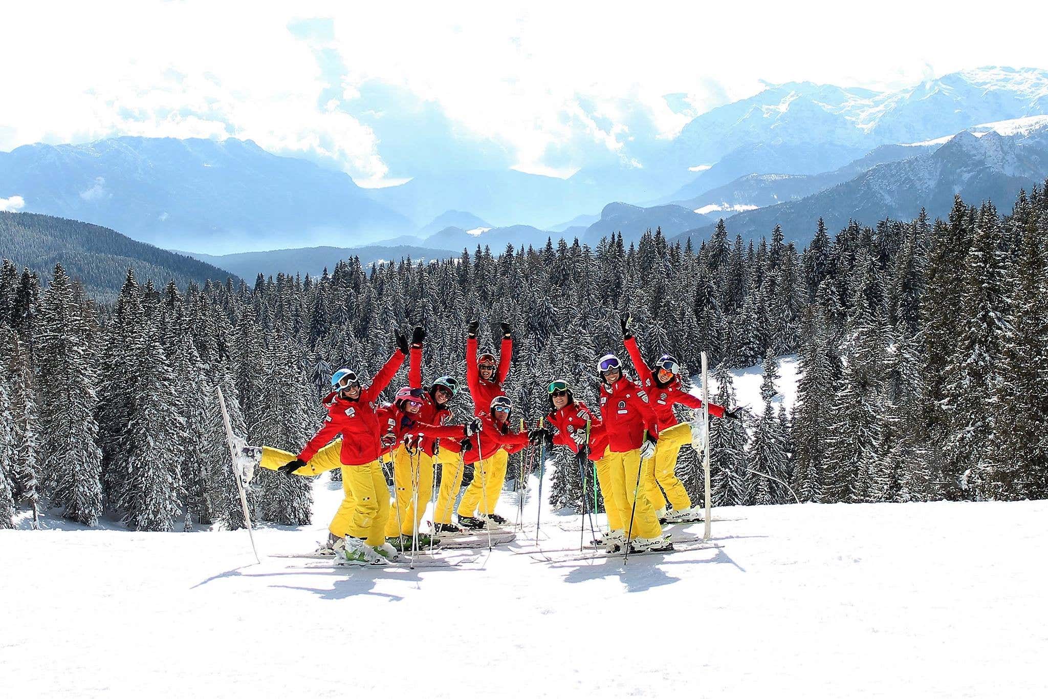 Verena Ski School instructors are distinguished by a red and yellow uniform and stand out in the white snow to instill confidence and friendliness. Thanks to their expertise, any kind of skier can achieve their goals and at the same time have fun in the midst of the whitewashed landscapes.