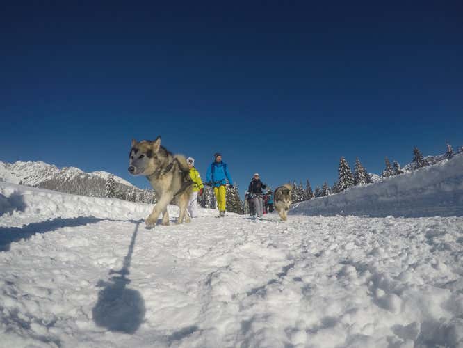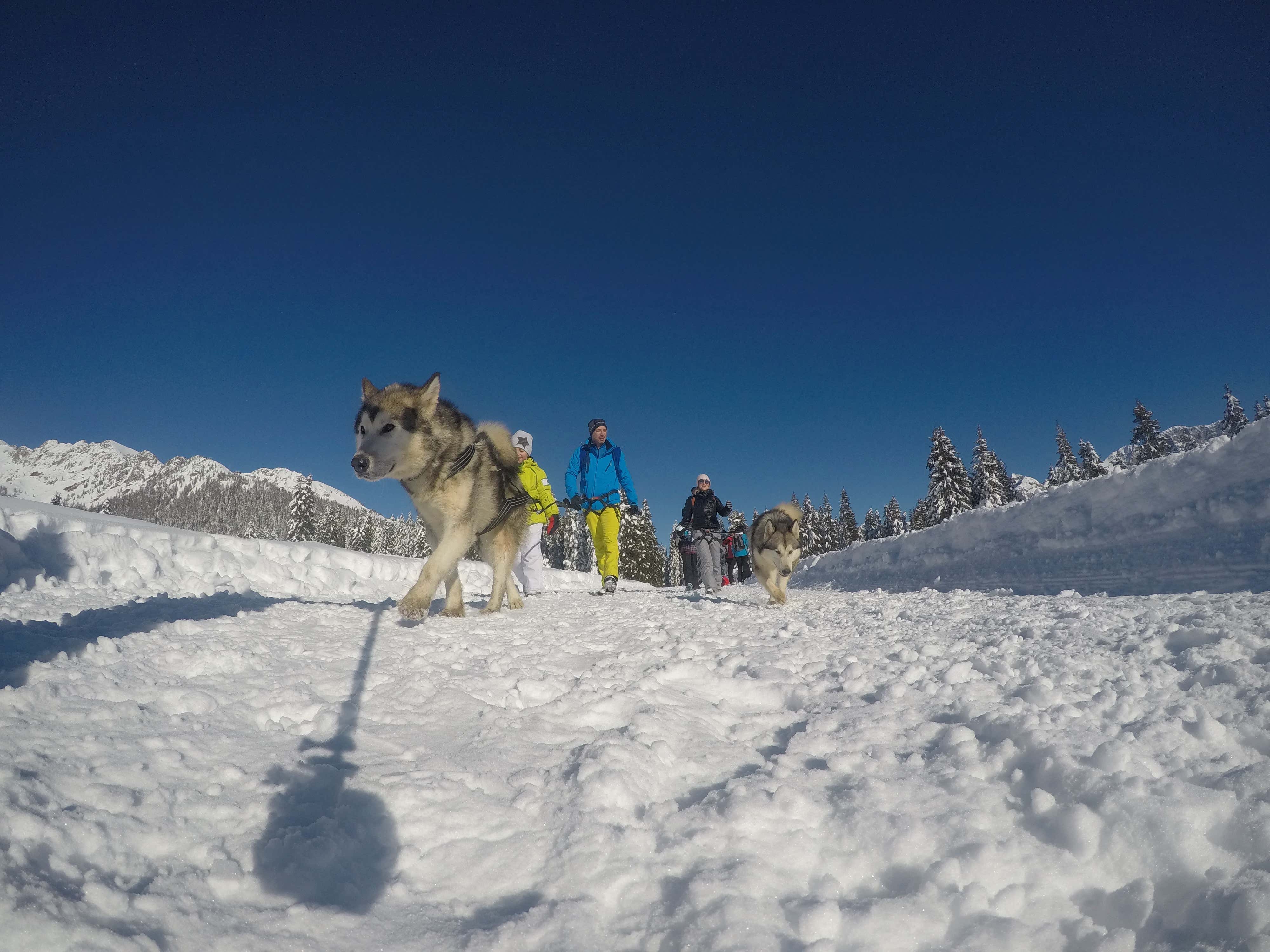 Join us for snowshoeing with husky at Madonna di Campiglio: an experience combining nature, freedom and very special company! You will walk through the snow-covered forests of Val Genova, with a husky at your side and the Nardis Waterfalls as your destination: a gentle and scenic trail offering spectacular views of the Brenta Dolomites, shrouded in the silence of winter. We are waiting for you!