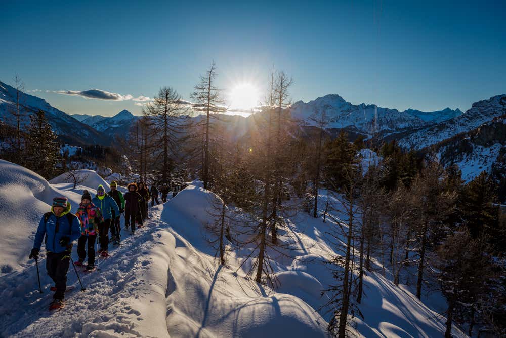 Have you ever admired the sunset with snowshoes on your feet? If the answer is no, you will be able to do so during this snowshoe hike in Valtellina! Walk in the snow for 3 hours through the woods and pastures of the Orobie, stopping at a panoramic viewpoint over the valley as the sun drops over the horizon.