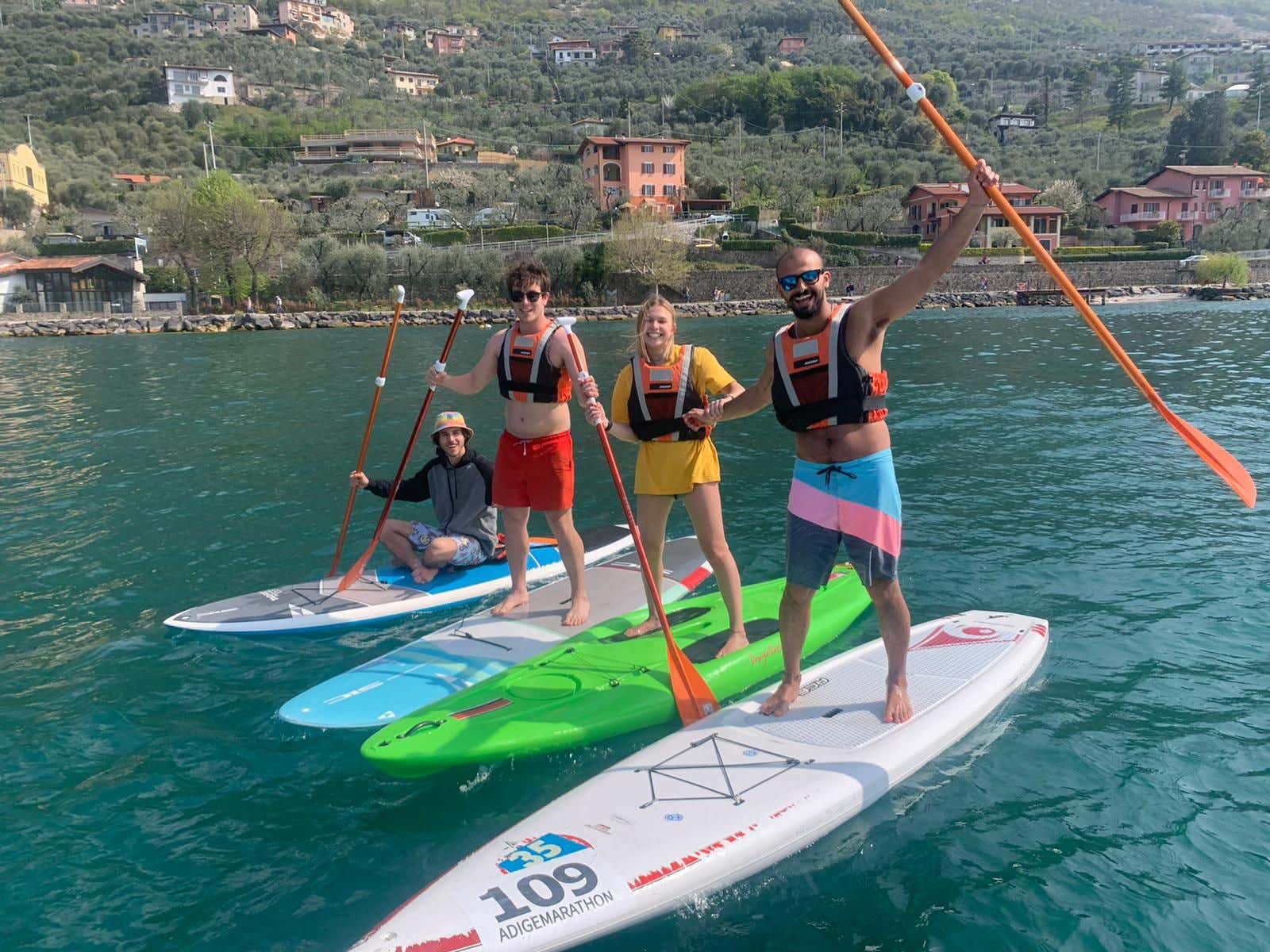 Learn to ride SUP on Lake Garda. Board on your feet and paddle in hand, you'll discover how much fun the sport that's making the rounds around the world is. In the company of an experienced instructor, you will discover all the secrets of SUP in 2 hours and ride around the lake independently. Get ready to stay balanced!