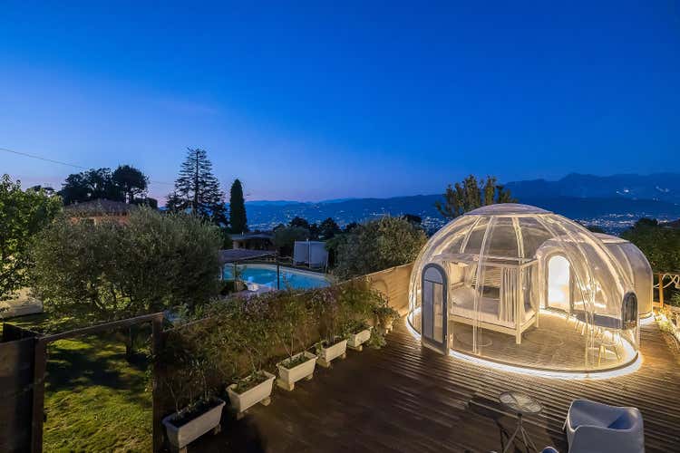 Stay for one night in a transparent Bubble Room on the Riviera di Levante in Ameglia, a short distance from Sarzana and the Cinque Terre. Relax by the pool surrounded by olive trees and experience the magic of sleeping under the stars in a romantic and exclusive retreat!