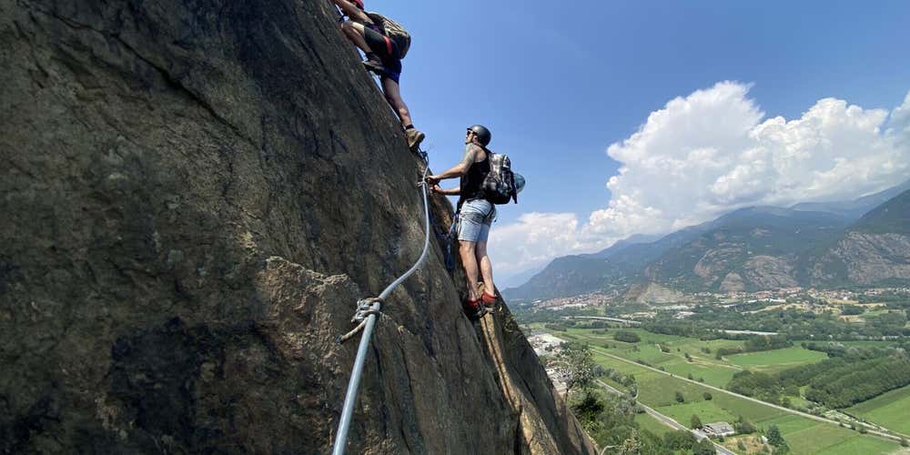 Walk the via ferrata Carlo Giorda, also known as the most famous via ferrata in Val di Susa: in the company of a mountain guide, set off from Sant'Ambrogio di Torino and venture along a route characterised by paths, vertical walls and Tibetan bridges. Then, after 5 hours, you will reach the famous Sacra di San Michele and touch its walls!