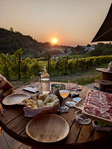 rebecca e.17 Aug 2025 | Wine tasting in the vineyard with a panoramic view of Vigoleno Castle