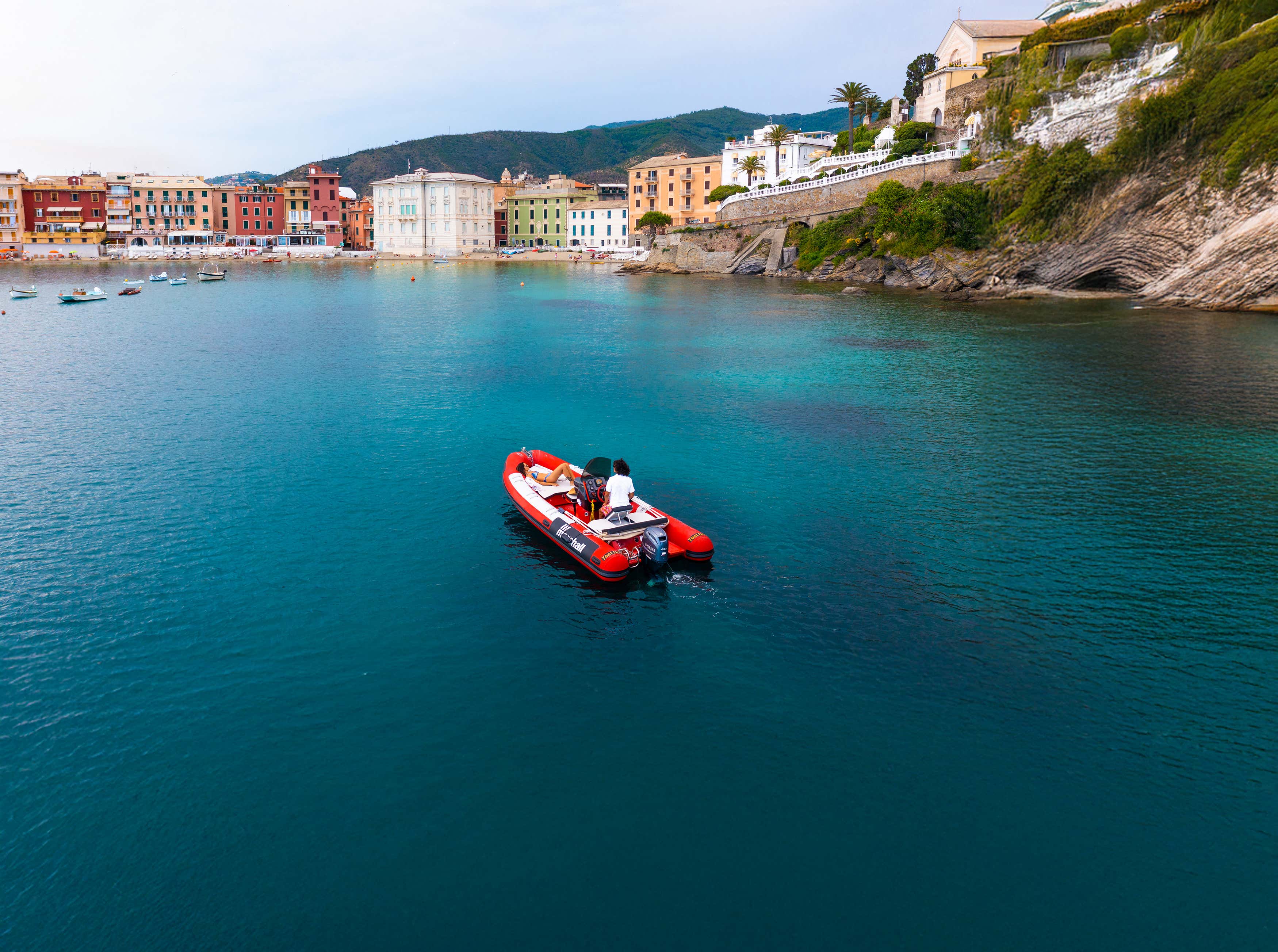 Goditi il mare di Sestri Levante in libertà! Esplora la costa con il noleggio gommone da 6 metri e 40 CV, senza bisogno di patente nautica. Fino a 6 persone a bordo e tutto il comfort per un’avventura indimenticabile!