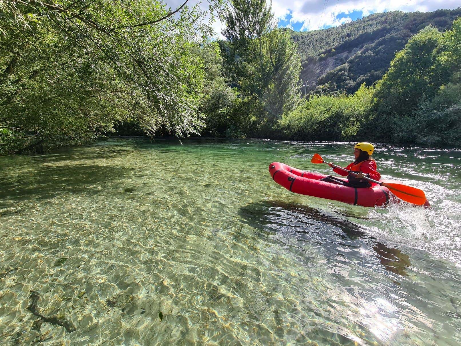 Gonfia il tuo packraft e avventurati con una guida nella splendida cornice naturale del fiume Velino e Salto! Pagaiata dopo pagaiata, giungerai nel centro storico di Rieti. Ad accoglierti troverai rapide, in prossimità delle quali parteciperai a una "frizzante" lezione di nuoto in corrente. Per 4 ore di puro divertimento!