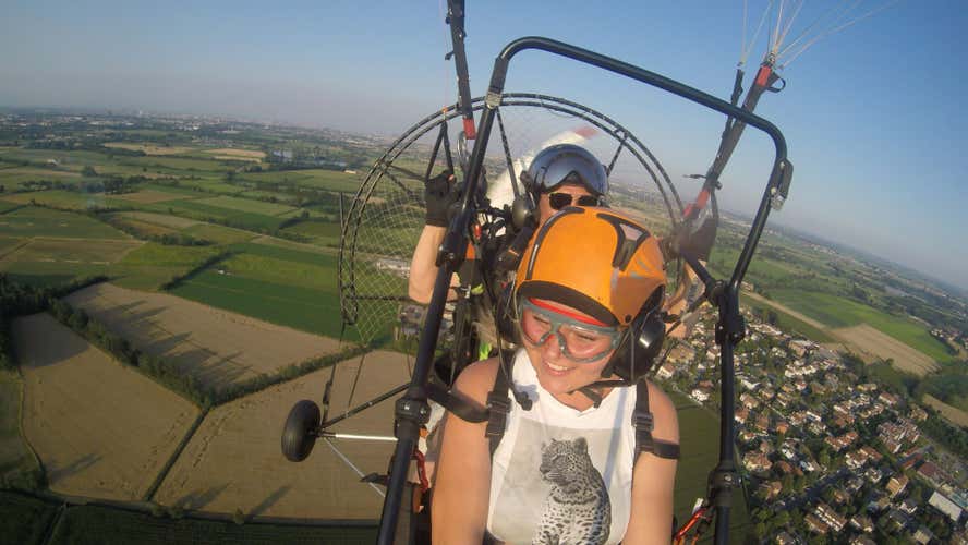 Alla fine per via del mal tempo ci è stato proposto di cambiare il volo in paramotore con un volo in ultraleggero ed è stata comunque una bellissima esperienza. Il nostro pilota era super simpatico e ha saputo tranquillizzare chi aveva un po' di ansia.