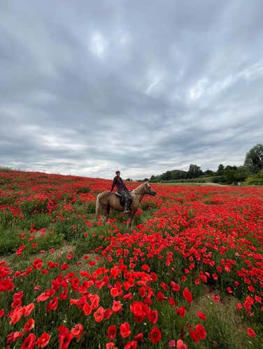 È stata una passeggiata a cavallo che mi ha davvero sorpresa! L'istruttrice Giulia è stata fantastica: si vedeva che ama quello che fa e mi ha trasmesso tanta tranquillità. Prima di salire in sella, mi ha fatto vivere un momento bellissimo: un primo approccio con il cavallo (non sapevo che spazzolare un cavallo fosse così rilassante), cosa che nessuno mi aveva mai fatto fare nelle mie esperienze precedenti.nIl percorso è perfetto sia per grandi che piccini anche senza alcuna esperienza. In più, a rendere tutto ancora più magico, c'era anche Rudy, un simpaticissimo Jack Russell che ci ha accompagnato per tutto il giro come se fosse il nostro piccolo Cicerone!nUn’esperienza che consiglio a tutti, semplice, emozionante e davvero ben fatta. Vi consiglio di andarci in questo periodo anche per poter passare vicino ad un bellissimo campo di papaveri!