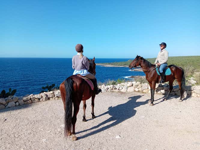 Rendi uniche le tue vacanze nel Salento con un'emozionante passeggiata a cavallo. Potrai vivere un'esperienza unica a contatto con la natura ed esplorare la regione in modo davvero originale. Anche se non sei mai andato a cavallo, potrai scegliere tra itinerari meravigliosi: quello nei dintorni di Melendugno, ad esempio, da dove è possibile esplorare la zona costiera di Sant'Andrea, tra faraglioni e scogliere a picco sul mare, o quello nel Parco delle Dune Costiere, dove avrai l'opportunità di cavalcare in riva al mare.