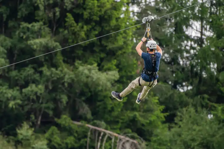 La zipline, conosciuta anche come “volo dell’angelo”, è una teleferica utilizzata a scopo ricreativo. Si tratta di un sistema costituito da una carrucola che scorre lungo un resistente cavo d’acciaio ed è dotata di solide imbragature che sostengono il passeggero mentre si lascia andare in discesa. La zipline permette di lanciarsi nel vuoto in totale sicurezza e di sperimentare il brivido dell’altezza e della velocità mentre si “vola” immersi in un panorama spettacolare.
